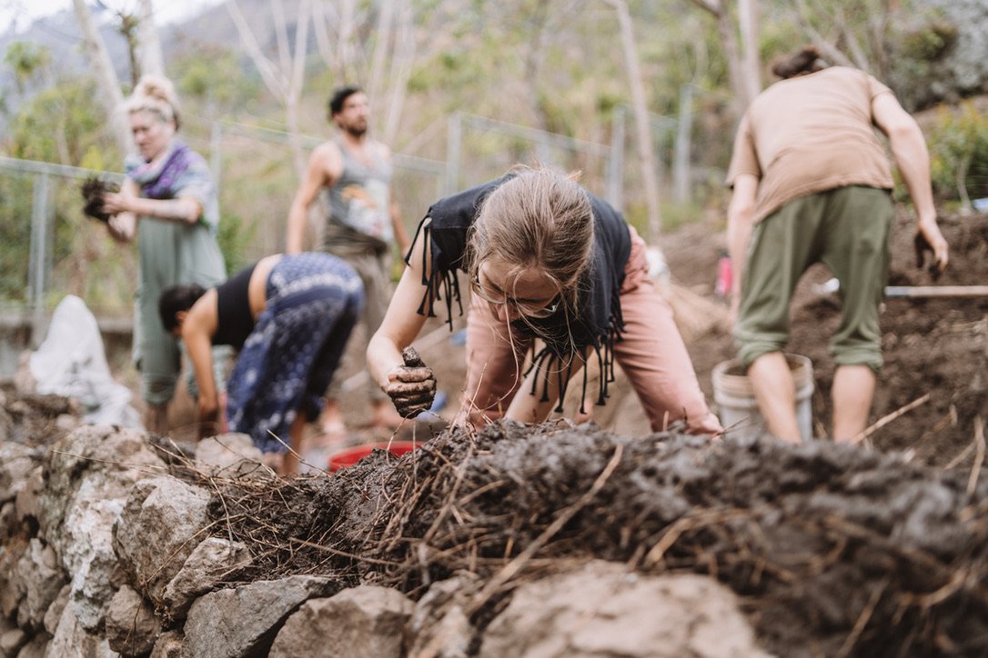 There are many styles of natural building that we utilize: cob, adobe, straw bale, rammed earth, wattle and daub, wood, bamboo, and stone work to name a few. But beyond the techniques and materials used, natural building also means connecting deeply with the place you are in; valuing and honoring the ecosystem to which you belong. It gives us the opportunity to build with consciousness so that our homes do not contribute to planetary destruction but rather the regeneration of the environment.